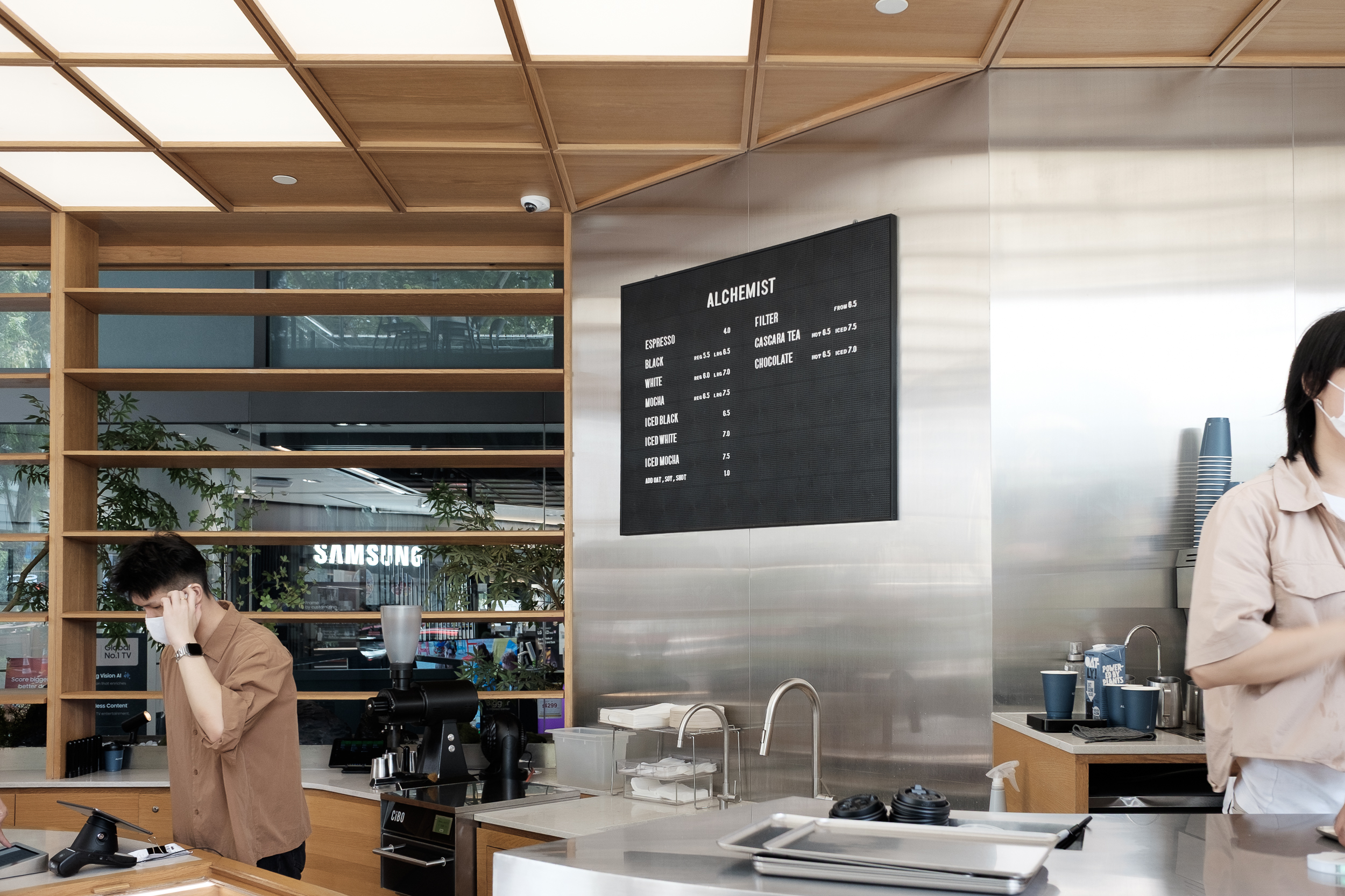 브랜딩이 굉장히 미니멀한 특징이 있는데, 복잡하고 유동인구 많은 오차드에서 간판이나 배너없이 사람만 줄 서 있는 모습이 오히려 더 튀는 것 같단 생각을 해본다. 사진 속 녹색으로 된 차찬텡 아래에 알케미스트가 있다.